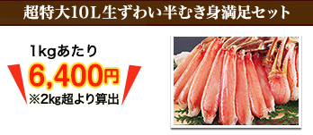 この「超特大10L~8L生ずわい半むき身満足セット3kg超(総重量3.6kg)」は19,800円なので、なんと1パック分(9,900円)丸々お得なんです!