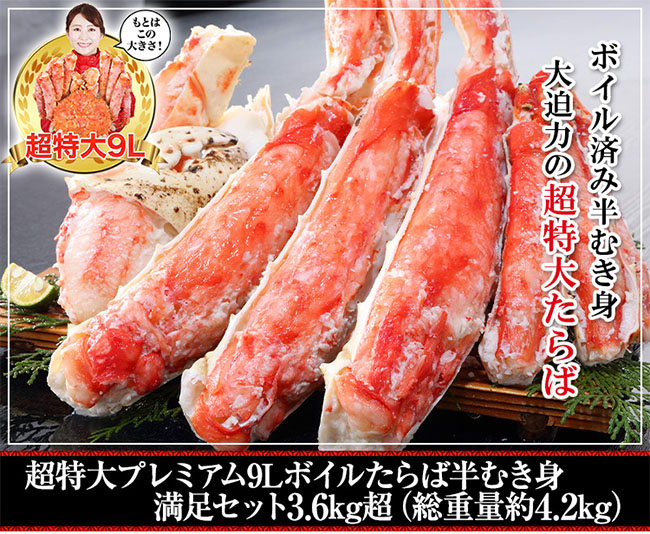 プレミアム超特大9L生たらば半むき身満足セット3.6kg超 12,000円オフ!